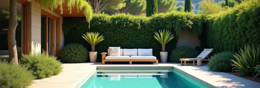 Le microclimat autour d’une piscine présente des défis uniques pour la végétation. L’humidité élevée, les éclaboussures chlorées et l’exposition intense au soleil créent un environnement exigeant. Les plantes méditerranéennes, naturellement adaptées à des conditions similaires, s’avèrent être d’excellentes candidates pour votre aménagement paysager.